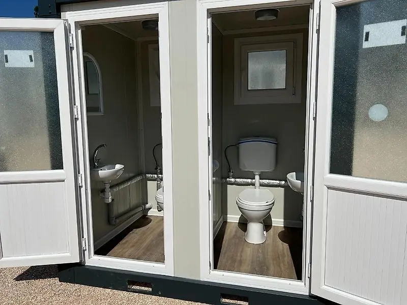 Le conteneur sanitaire WC double 120 × 220 cm est une solution compacte et fonctionnelle pour les besoins temporaires en sanitaires sur chantiers, événements, festivals ou sites isolés. Conçu pour accueillir deux utilisateurs simultanément, il combine intimité, confort et sécurité dans un module facile à transporter et à installer.